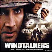 2001年9月の同時多発テロの影響で公開延期になって9ヶ月。ようやく公開になったジョン・ウー監督の第2次大戦物。日本軍と戦うアメリカ軍は日本にはわからないネイティヴ・アメリカン、ナバホ族の言葉を元に暗号を作っていた。解読にはナバホ出身者が必要。そのため、主人公のニコラス・ケイジはナバホの軍人たちを守り、万が一の時は情報が漏れないように殺す事を命じられる……。スコアはホーナー。これまでにもネイティヴ・アメリカンを題材にした"THUNDERHEART"などを担当している。今回もあちこちにネイティヴ・アメリカンの笛の音を加えながら、いつものホーナーパターンのカット&ペーストを繰り返している(^_^;) まあ、今更なのでその点は言うまい。戦争映画だからといって『地獄の七人』を期待するのも間違っている。これが今のホーナーなのだ。とはいえ、それなりにまとまっているし、アクションスコアも少なくない。その向きには価値があるかも。