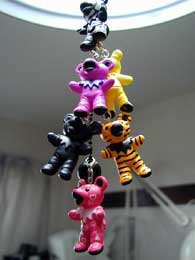 きゃあ、ことGRATEFUL DEAD BEARの新種が発見されたので報告しておこう。 左はきゃあの生る電灯コード――というのは冗談で、携帯ストラップにつけるフィギュアである。こんなにつけるワケにいかないのでコードに群がっている。 右はカフェオレカップ。中に入っているのとバックはミニサイズのきゃあ。立たせると13センチと通常サイズより5センチ小さい。手前はキーホルダーになるフィギュア。2種類のフィギュアは発売されたばかりで、結構出来がいい。2個セットで1000円から1200円。通販のStocksATMARKで購入。ここはきゃあのメッカです。他にも幾つか通販ショップあり。 さて、いきなり7月である。なんかめまいしますね。早い早い。 |