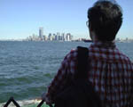 今日も7時には目が覚めてしまったので、仕方なく日記と仕事を少しして、9時にロビーで待ち合わせ。今日は梅景氏にNYを案内していただく。まずベーグルで朝食を済ませた後、最初は何はともあれ自由の女神だというので、バッテリーパークからエリス島へのフェリーに乗る。自由の女神には登る気はないので、船上から見るだけである。しかし、実は私はとあるコミックの主人公のマネをしてみたかっただけである。往復の船の舳先で行く手を見ていると、何となくその主人公の気持ちがわかったようだ。あの設定をした作者に感心してしまう。さて、何のコミックでしょう?