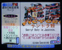 ドリキャスでインターネットにつないで自分のHPを見てみようと思い立ち、接続する。思ったよりも簡単につなげられた。が、やはりTVの画面というのは悲しいものである。これでは辛い。ネットサーフィンに困らない程度のファンクションキー設定(.neとか.jpはデフォルトで設定している)はあるが、キーボードがないと辛いのは同じだし。何よりISDNに慣れている私には33.6kbpsはたまらない。でも、パソコンが全部ダメになっても、とりあえずこれで見られるぞ。